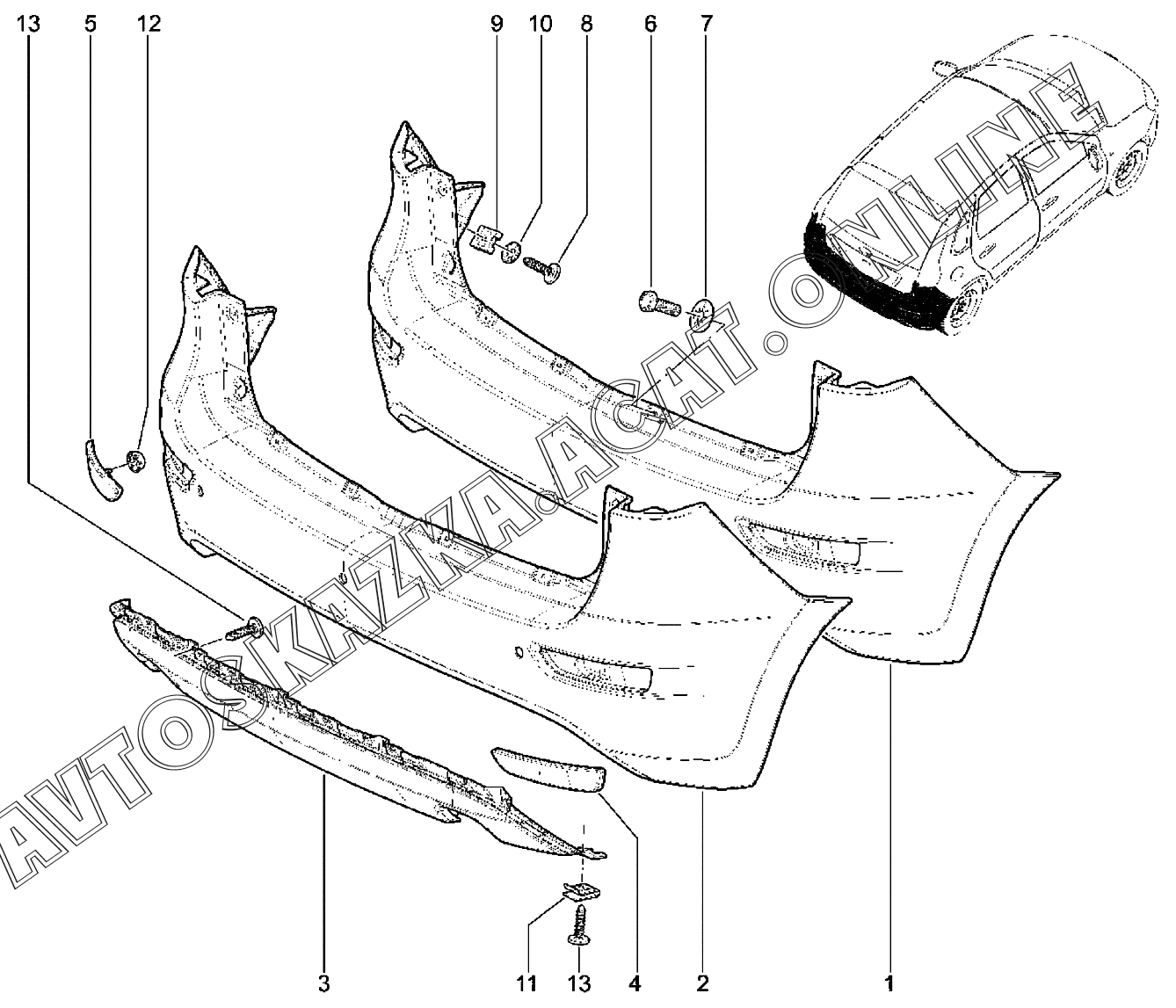 | Название детали: | Бампер задний с отверстиями под парктроник |