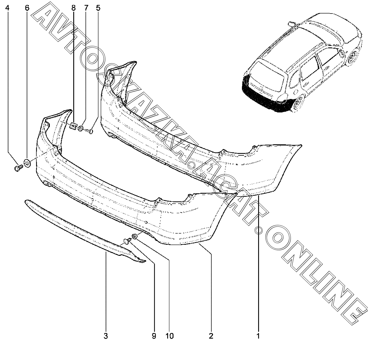 | Название детали: | Бампер задний без отверстий под датчики парковки (под окраску) |