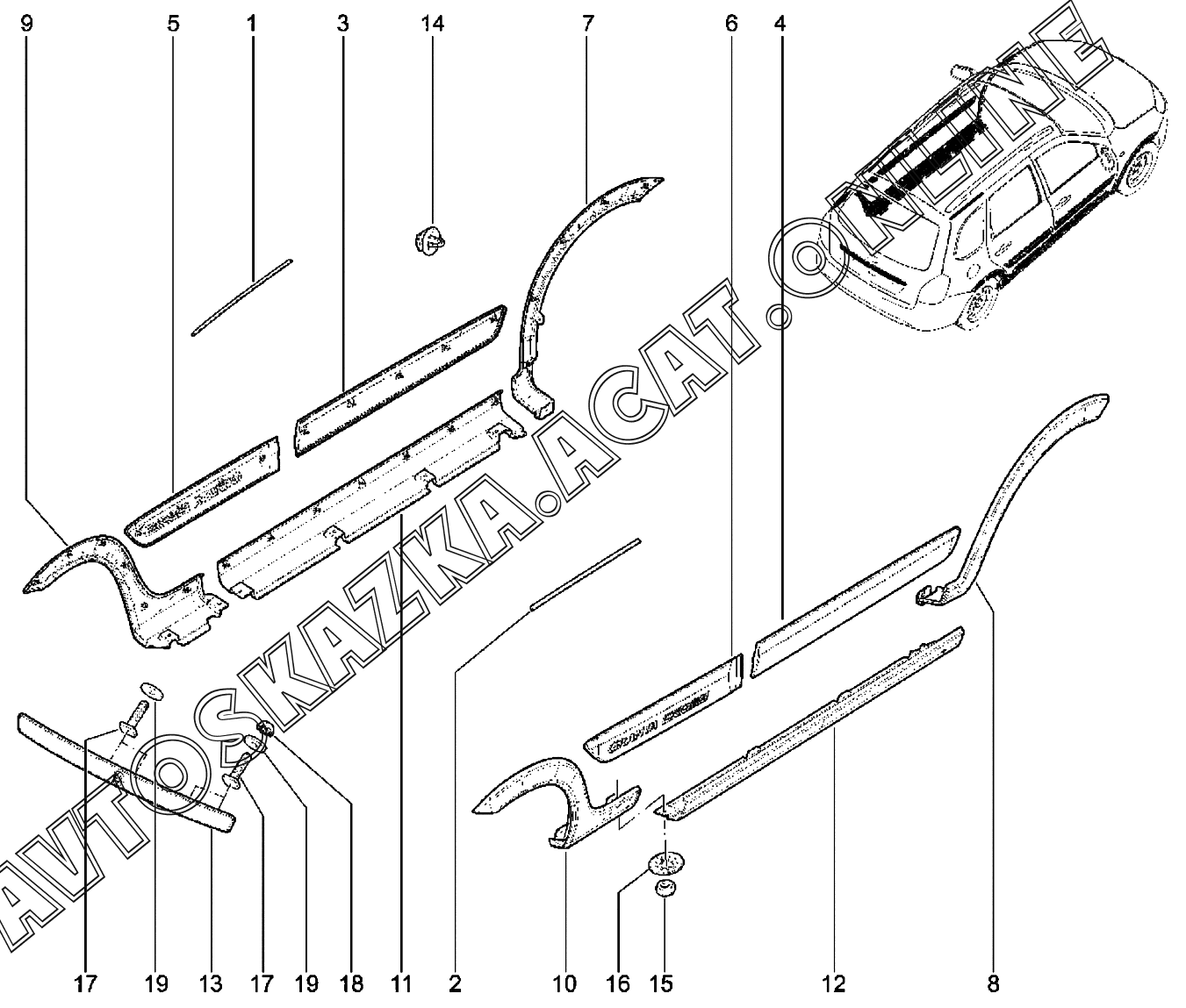 Молдинги, накладки (Crоss) ВАЗ Granta (2190, 2191 Lada Granta (седан, лифтбек, хэтчбек, универсал, FL, CROSS))