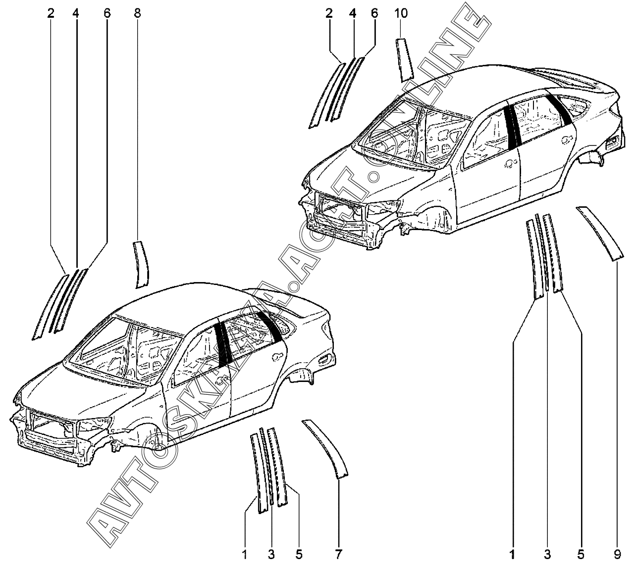 | Название детали: | Накладка задней стойки задней двери правая |