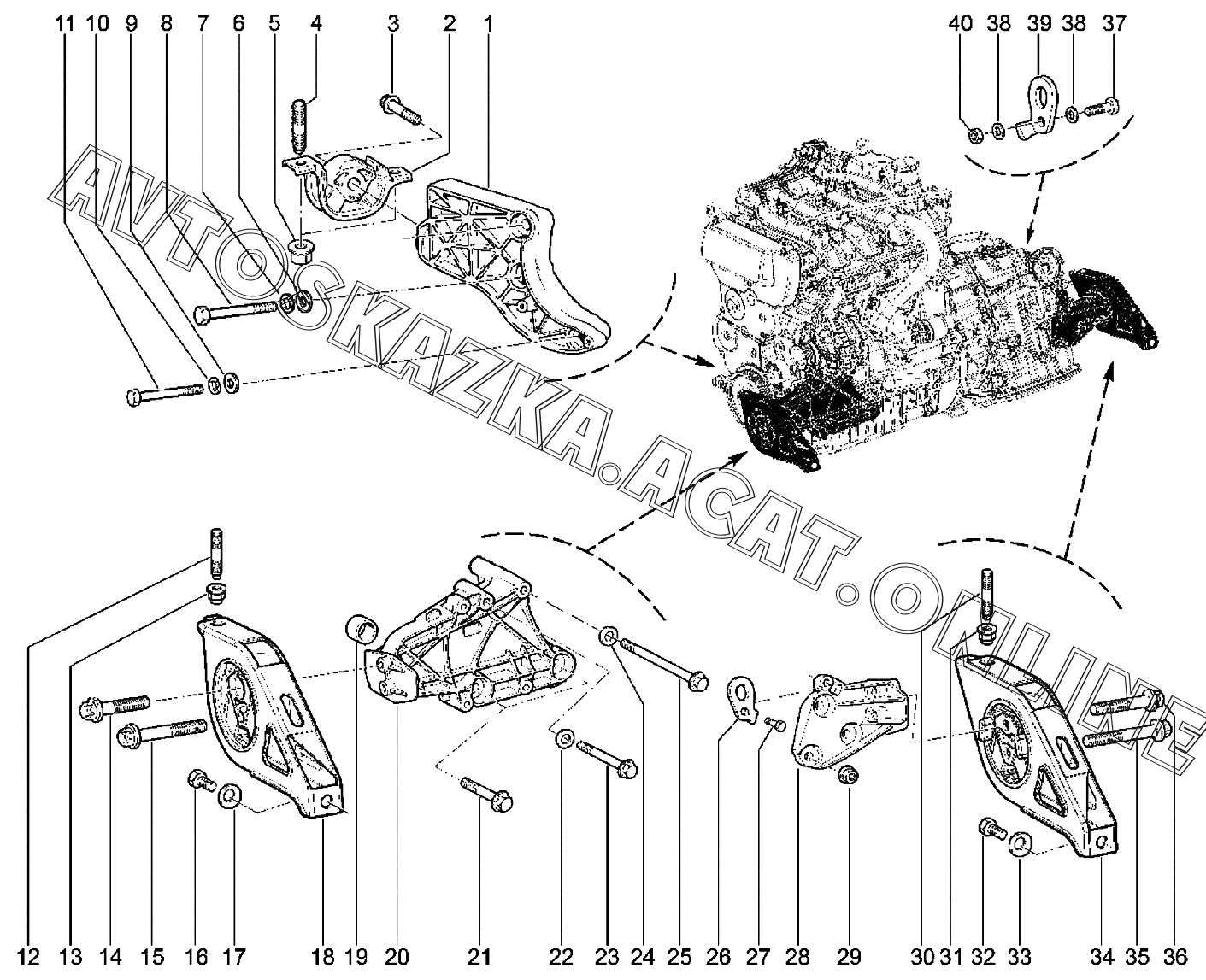 Подвеска двигателя (с КПП BVA4, с КУ) ВАЗ Kalina (2192, 2194 Lada Kalina (хэтчбек, универсал, CROSS))