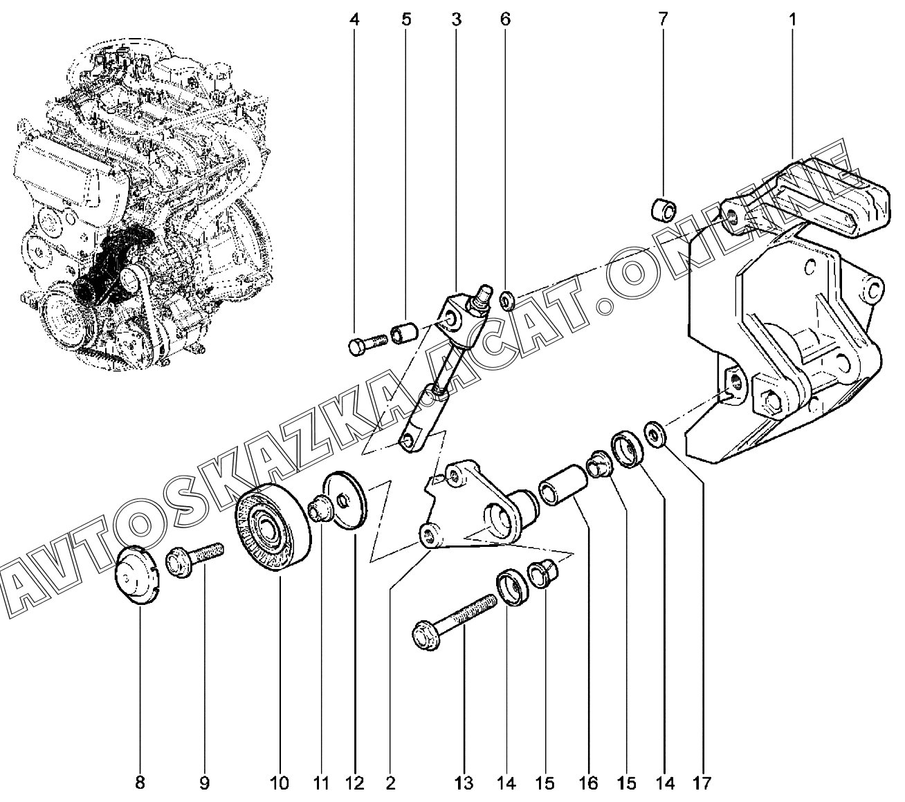 Кронштейн привода вспомогательных агрегатов (с КУ)(деталировка) ВАЗ Kalina (2192, 2194 Lada Kalina (хэтчбек, универсал, CROSS))