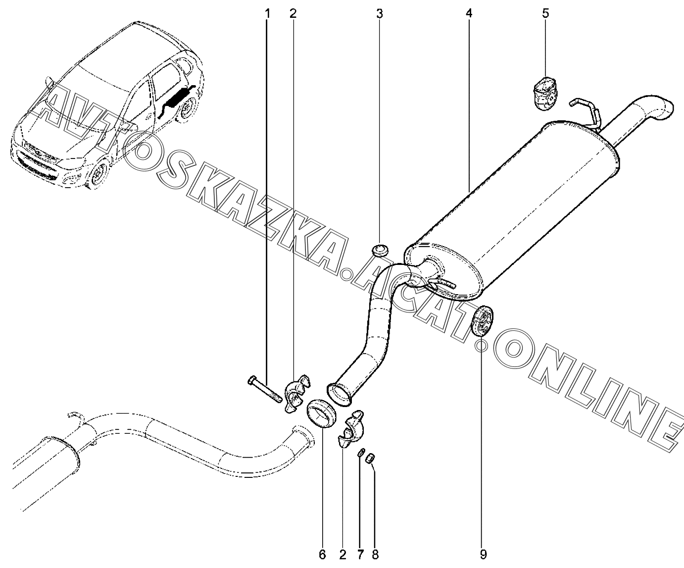 Глушитель основной ВАЗ Kalina (2192, 2194 Lada Kalina (хэтчбек, универсал, CROSS))
