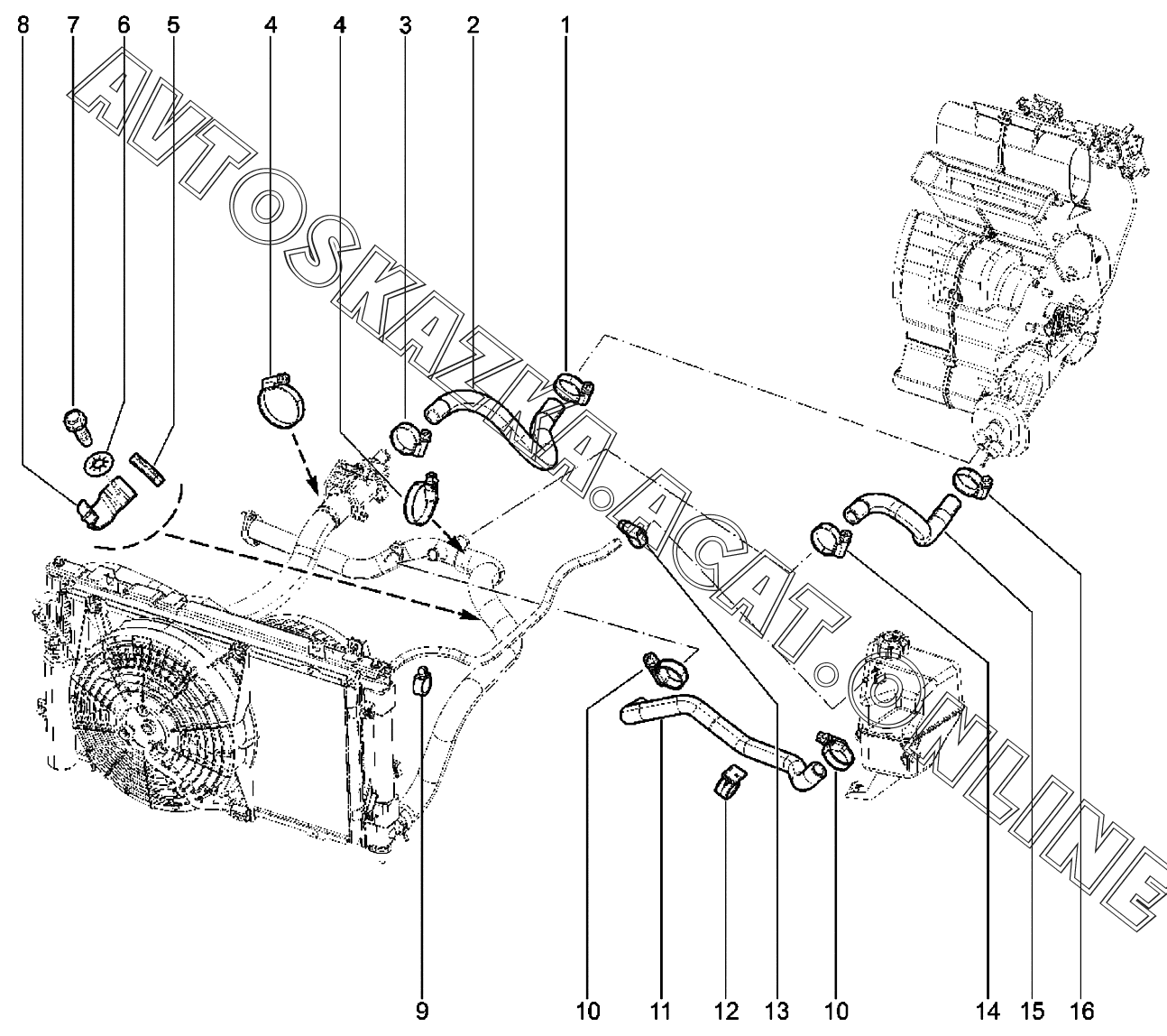 Шланги системы охлаждения двигателя (BVM5, BVA4) ВАЗ Kalina (2192, 2194 Lada Kalina (хэтчбек, универсал, CROSS))