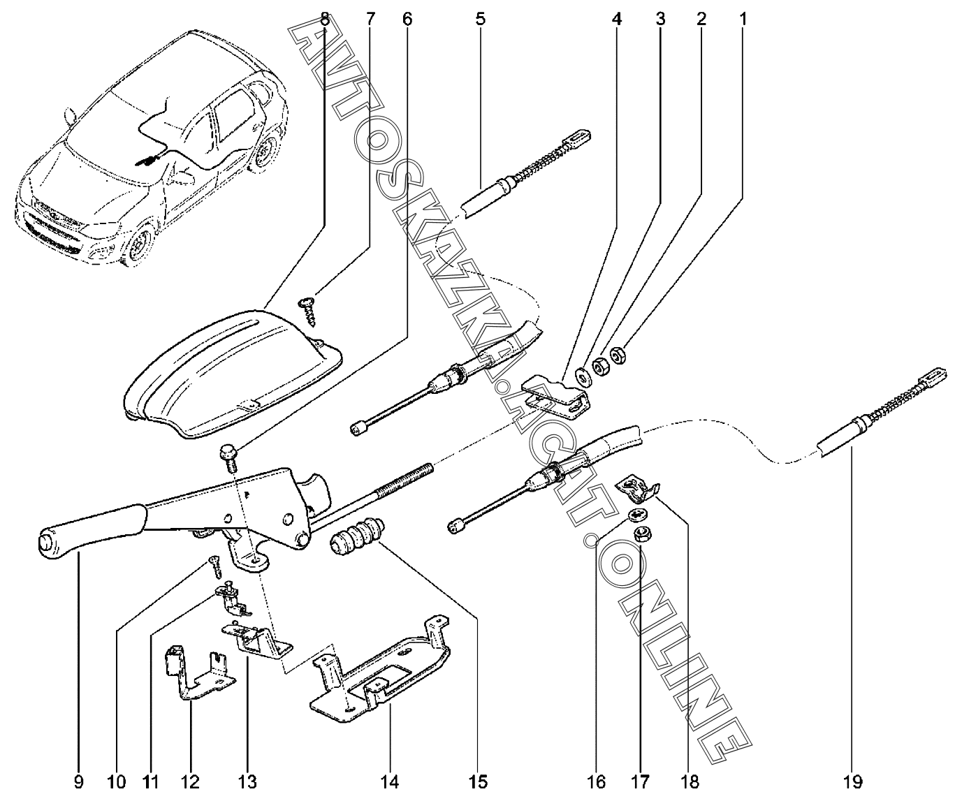 Механизм стояночного тормоза ВАЗ Kalina (2192, 2194 Lada Kalina (хэтчбек, универсал, CROSS))