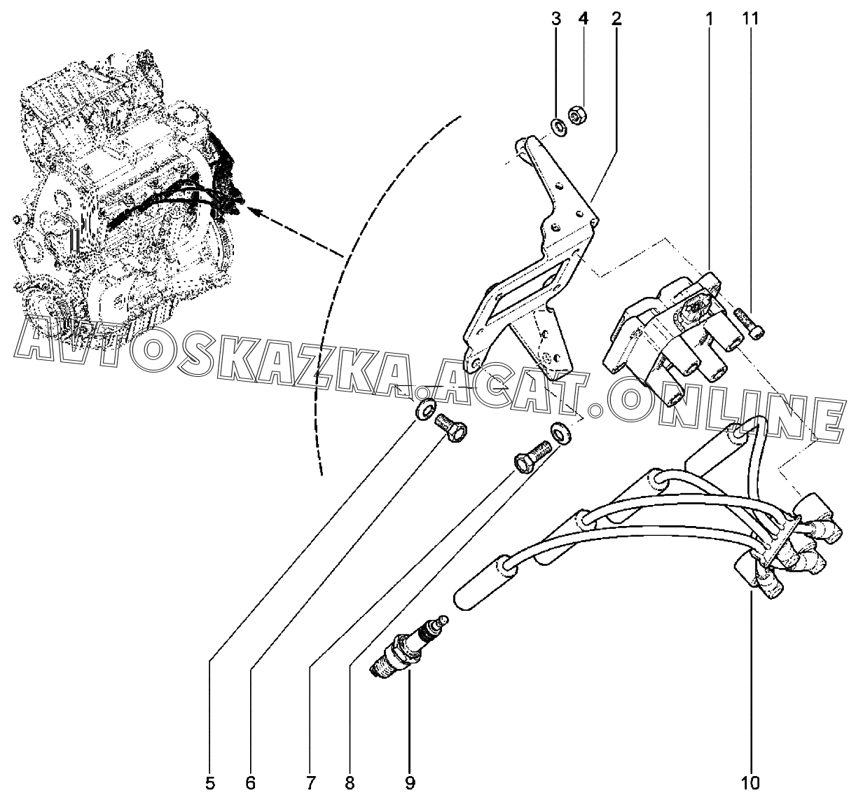 | Название детали: | Кронштейн крепления катушки зажигания в сборе |