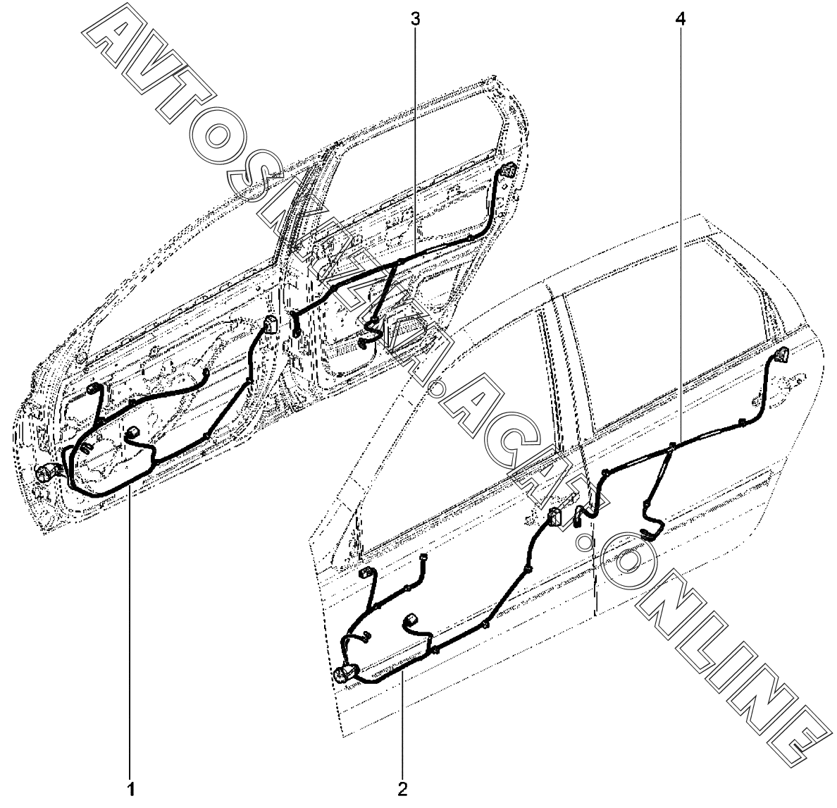 Жгуты проводов дверей ВАЗ Kalina (2192, 2194 Lada Kalina (хэтчбек, универсал, CROSS))