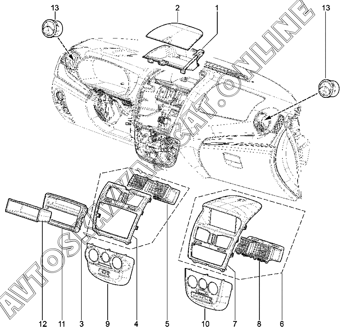 | Название детали: | Накладка консоли панели приборов в сборе |