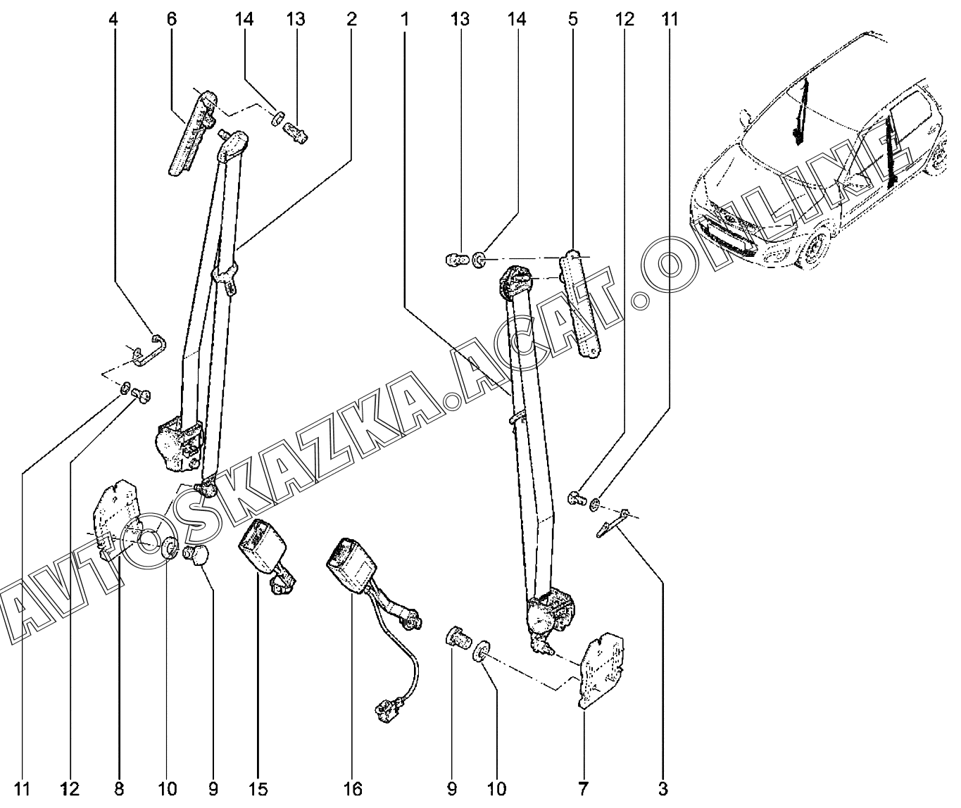 Ремни безопасности передние ВАЗ Kalina (2192, 2194 Lada Kalina (хэтчбек, универсал, CROSS))