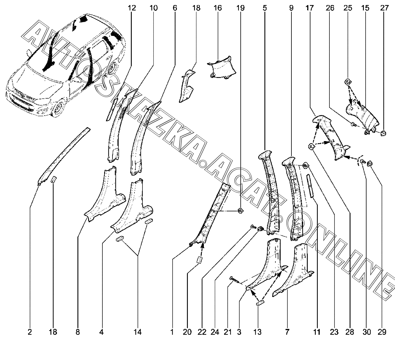 | Название детали: | Обивка центральной стойки верхняя левая |