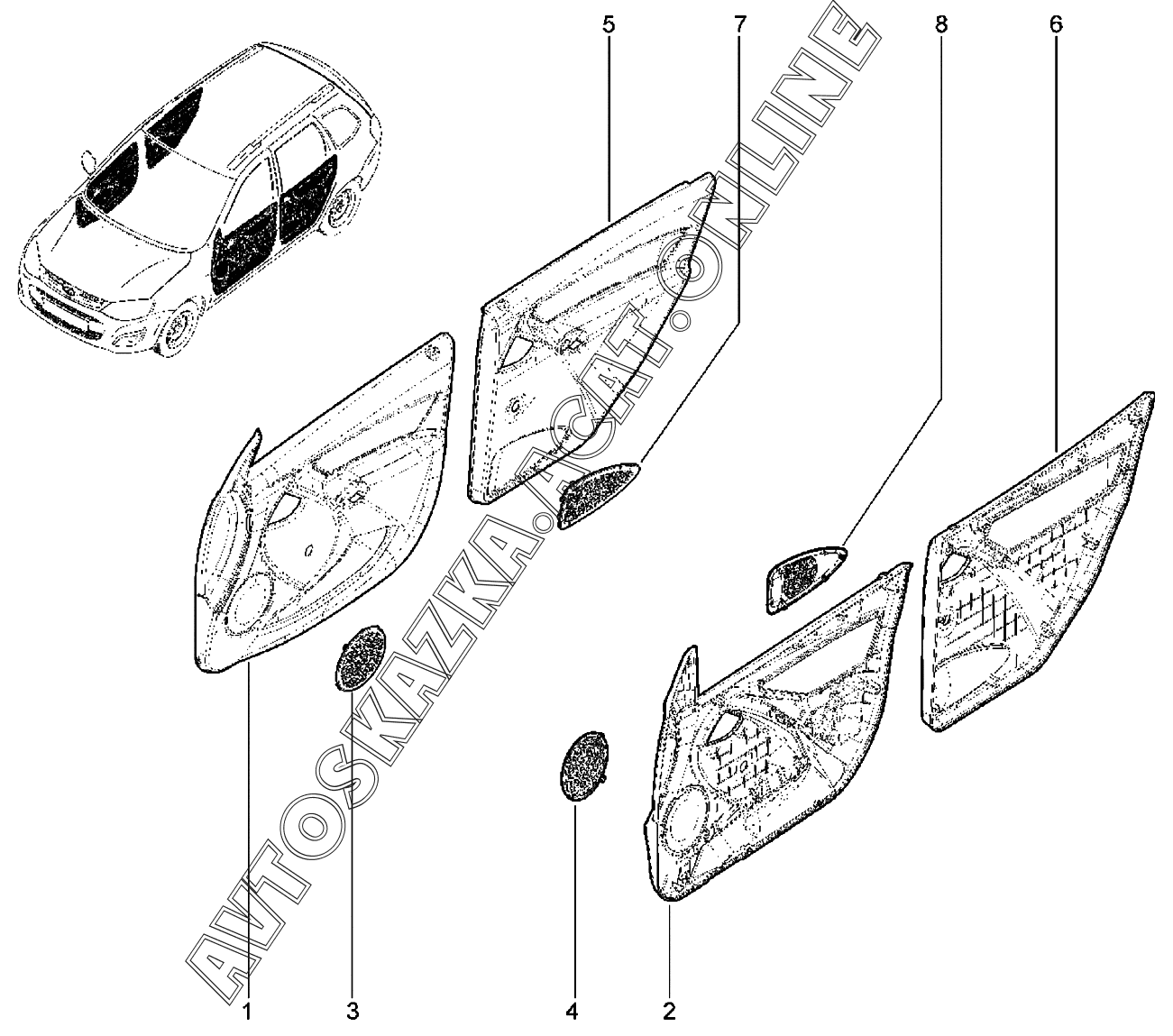 Обивки дверей ВАЗ Kalina (2192, 2194 Lada Kalina (хэтчбек, универсал, CROSS))