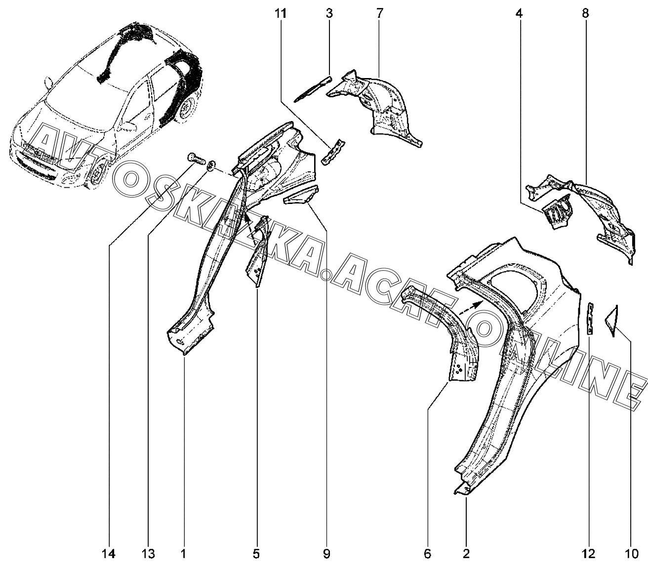 | Название детали: | Усилитель заднего крыла правый в сборе |