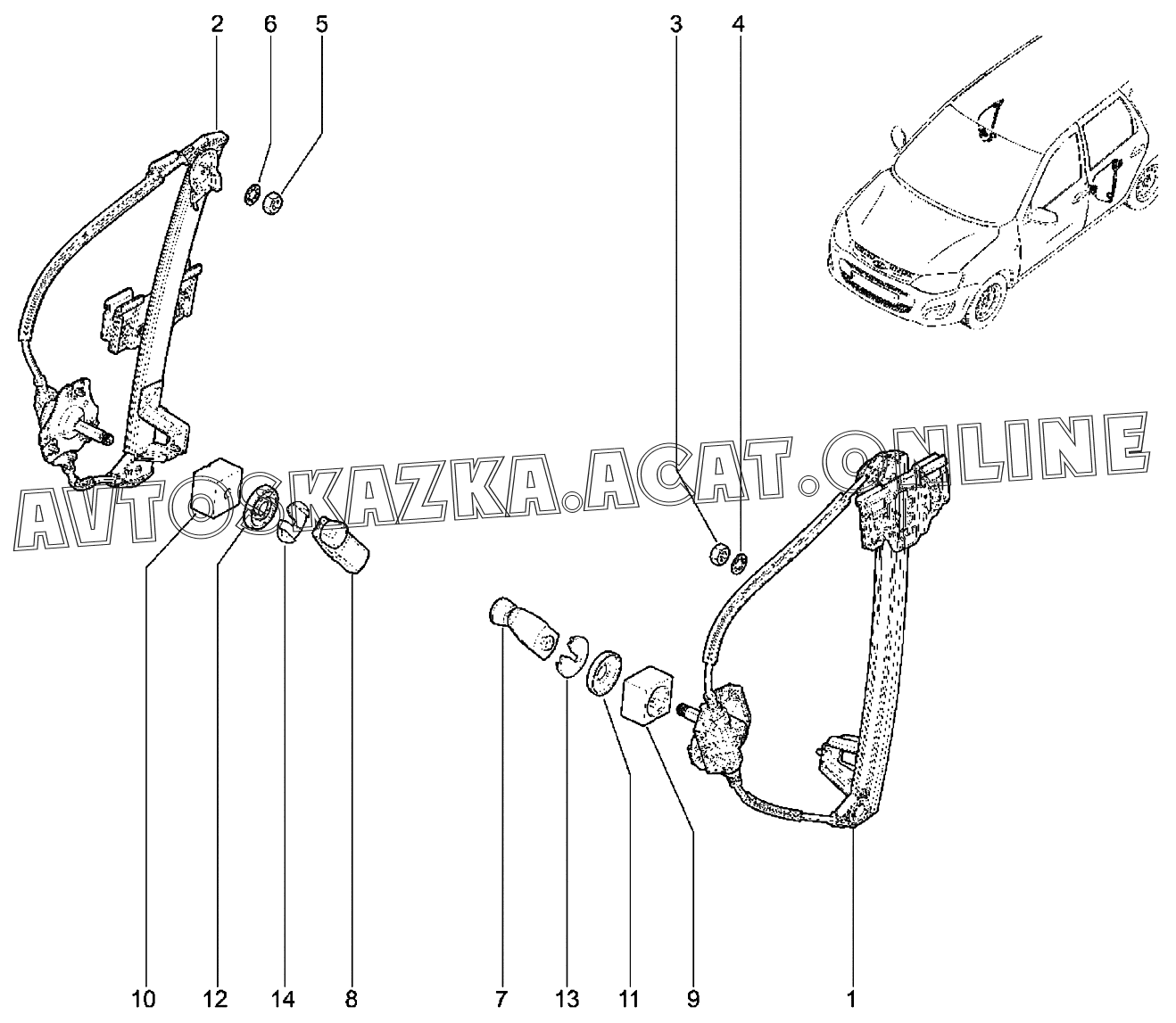Стеклоподъемники задних дверей ВАЗ Kalina (2192, 2194 Lada Kalina (хэтчбек, универсал, CROSS))
