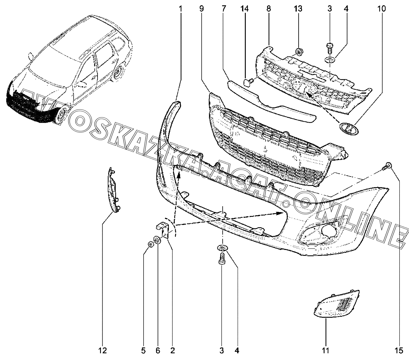 Бампер передний ВАЗ Kalina (2192, 2194 Lada Kalina (хэтчбек, универсал, CROSS))