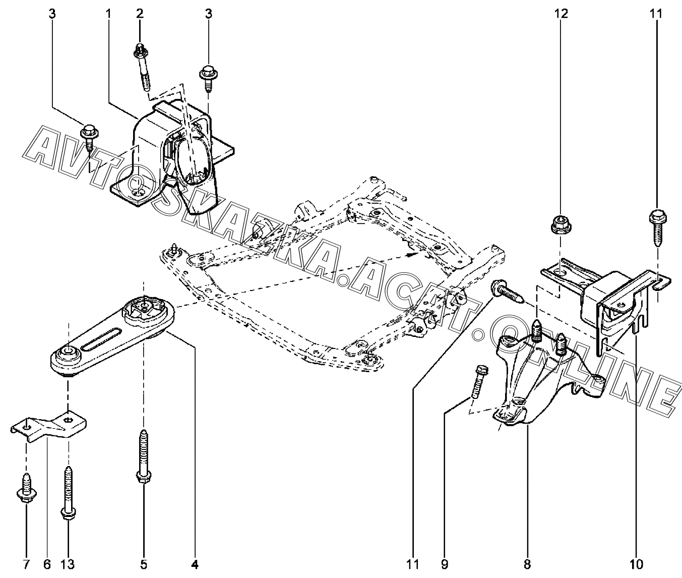 | Название детали: | Болт крепления правой опоры подвески двигателя нижний |
