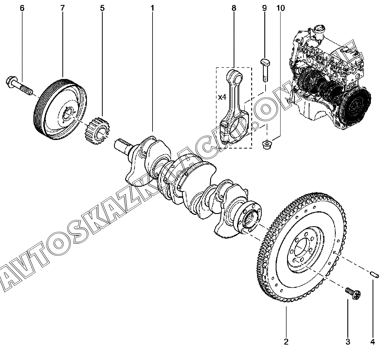 Коленвал, маховик, шатун (K7M) ВАЗ Largus (Lada Largus (хэтчбек, универсал, фургон, FL, CROSS))