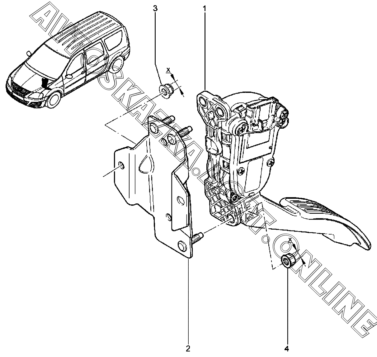 Педаль акселератора (K4M-E-5) ВАЗ Largus (Lada Largus (хэтчбек, универсал, фургон, FL, CROSS))