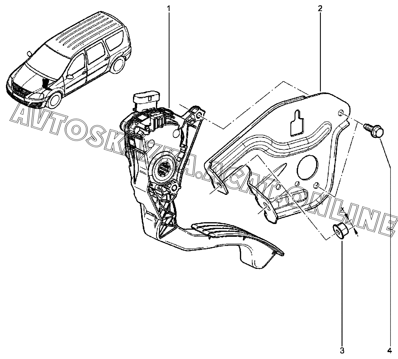 Педаль акселератора (P3M,P4M) ВАЗ Largus (Lada Largus (хэтчбек, универсал, фургон, FL, CROSS))