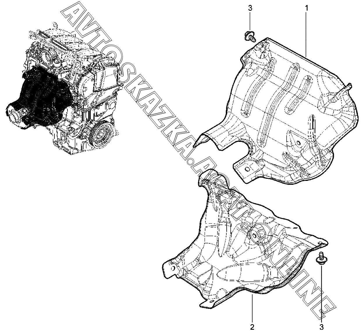 Экраны выпускного коллектора (K4M) ВАЗ Largus (Lada Largus (хэтчбек, универсал, фургон, FL, CROSS))