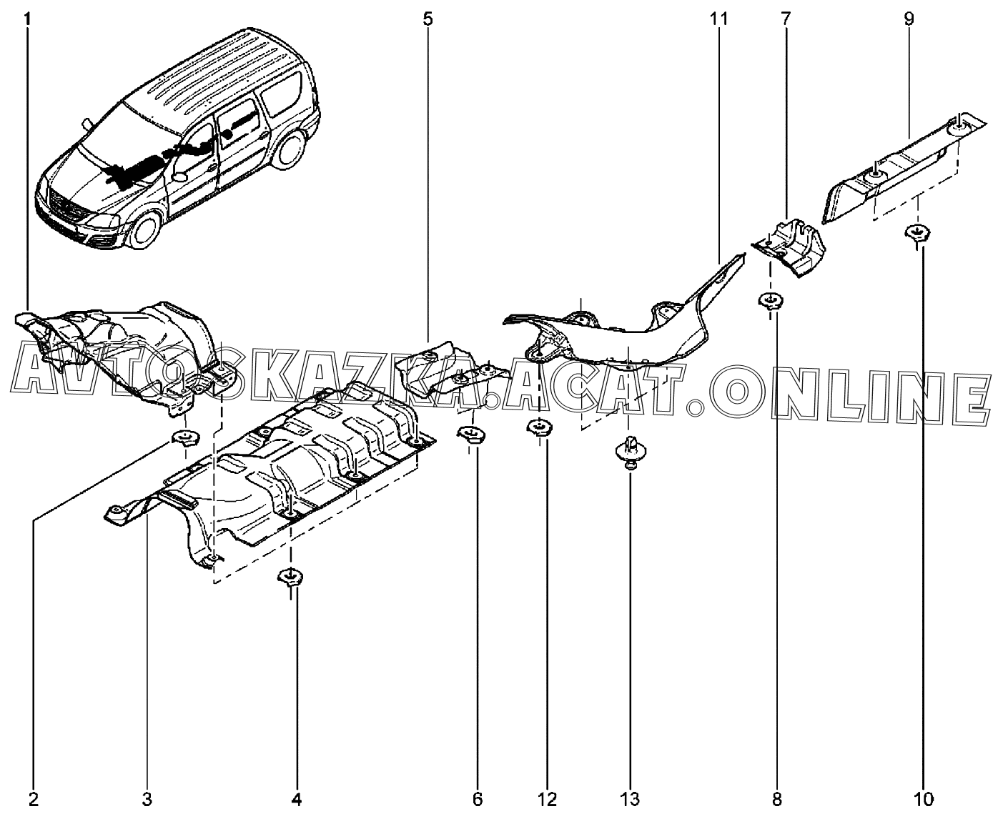 Термоэкран системы выпуска (P3M,P4M) ВАЗ Largus (Lada Largus (хэтчбек, универсал, фургон, FL, CROSS))