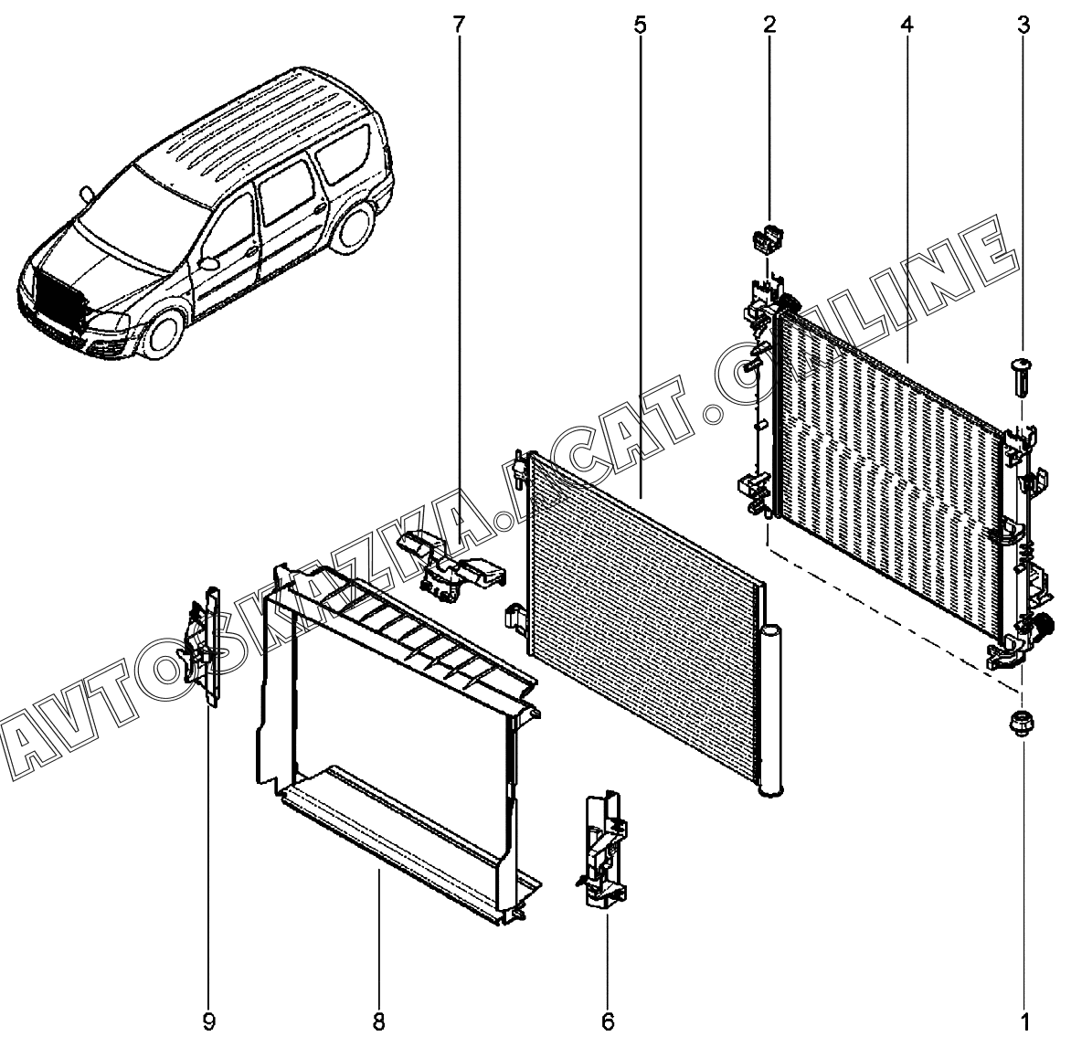 Радиатор охлаждения (FL) ВАЗ Largus (Lada Largus (хэтчбек, универсал, фургон, FL, CROSS))
