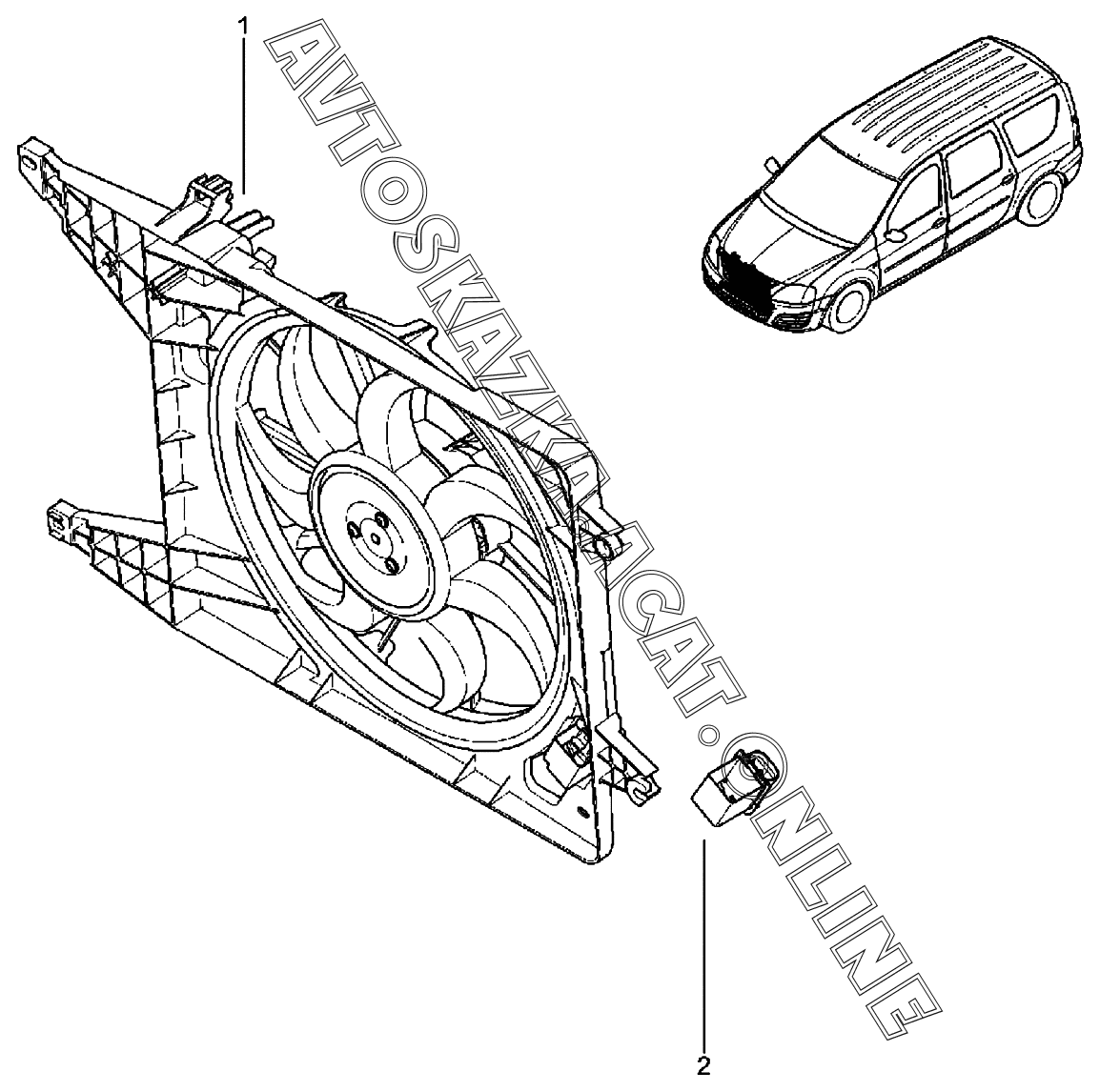 Электровентилятор (с КУ) ВАЗ Largus (Lada Largus (хэтчбек, универсал, фургон, FL, CROSS))