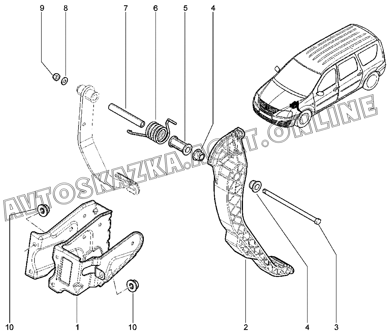 Педаль сцепления (X90) ВАЗ Largus (Lada Largus (хэтчбек, универсал, фургон, FL, CROSS))