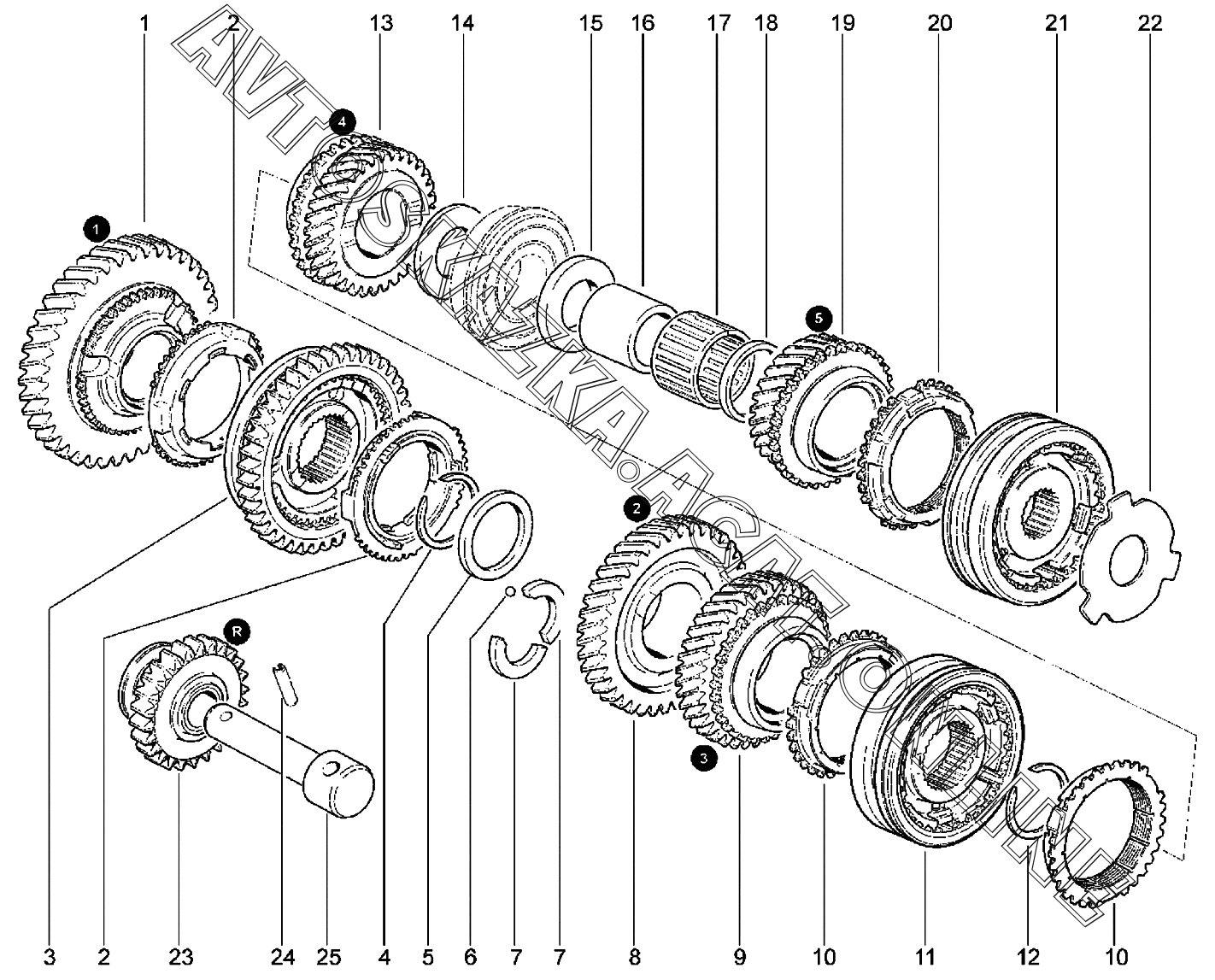 Шестерни КПП (BVI5-P3M,P4M) ВАЗ Largus (Lada Largus (хэтчбек, универсал, фургон, FL, CROSS))