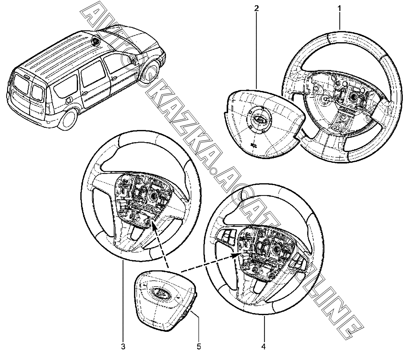 Рулевое колесо с НПБ ВАЗ Largus (Lada Largus (хэтчбек, универсал, фургон, FL, CROSS))