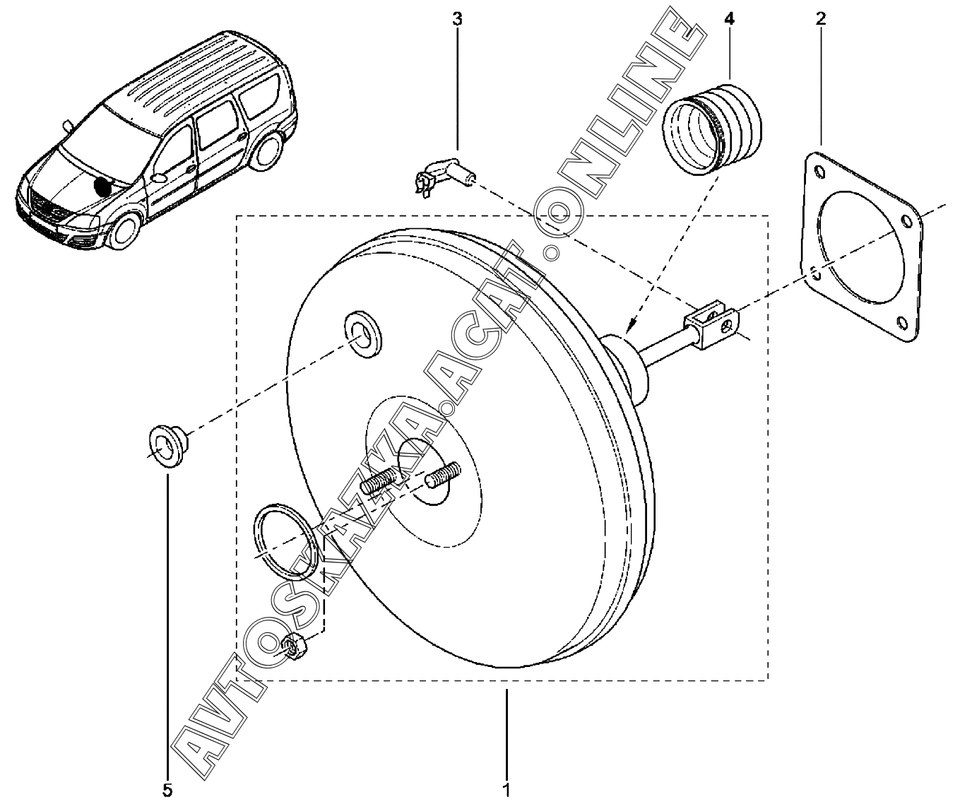 Вакуумный усилитель тормозов (K4M,K7M) ВАЗ Largus (Lada Largus (хэтчбек, универсал, фургон, FL, CROSS))