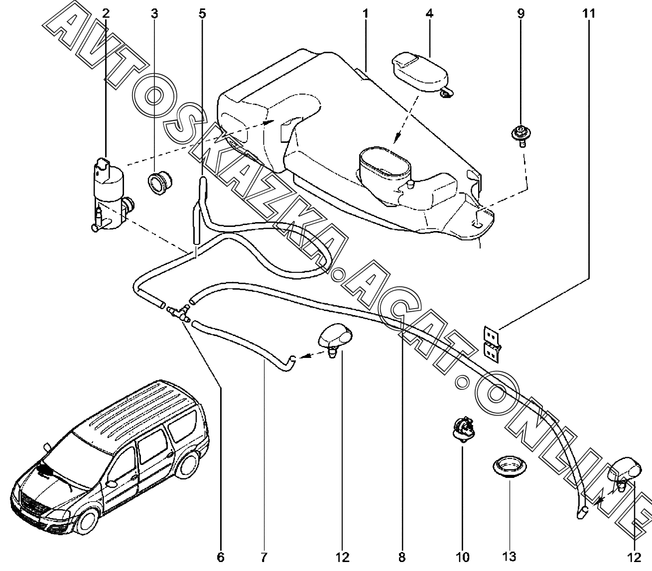 Омыватель (фургон) ВАЗ Largus (Lada Largus (хэтчбек, универсал, фургон, FL, CROSS))