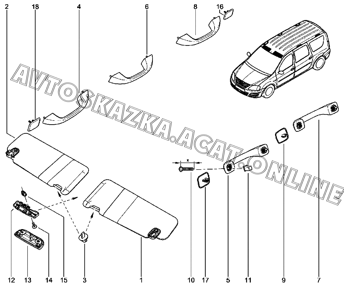 Поручни, козырьки, крючки ВАЗ Largus (Lada Largus (хэтчбек, универсал, фургон, FL, CROSS))