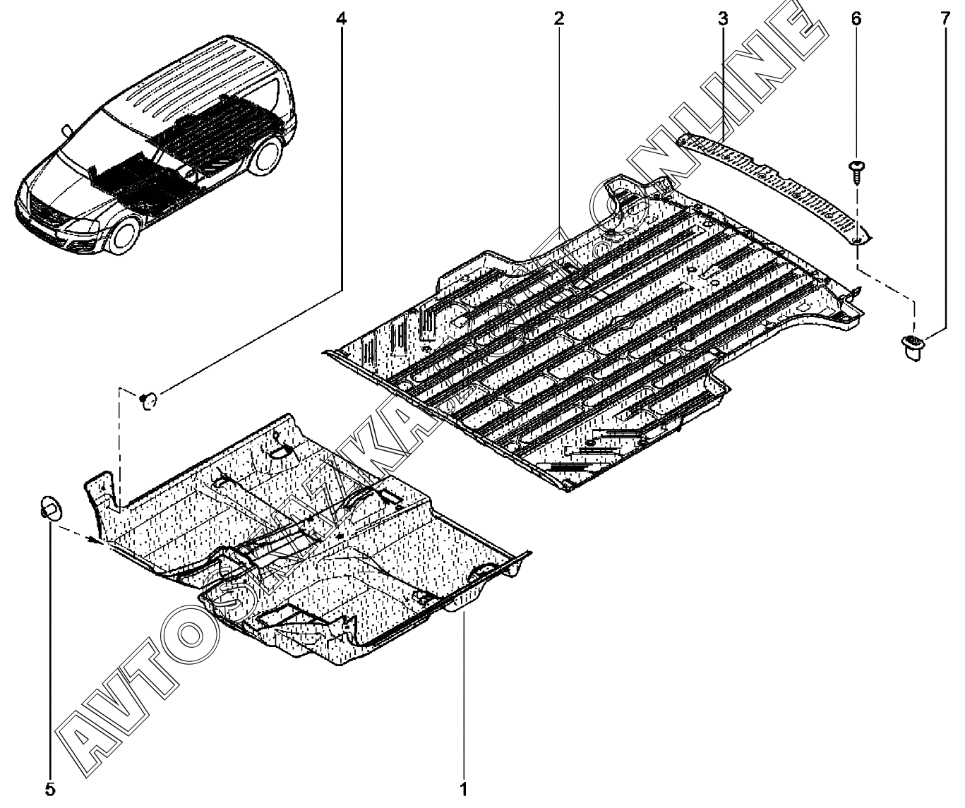 Ковер пола (фургон) ВАЗ Largus (Lada Largus (хэтчбек, универсал, фургон, FL, CROSS))