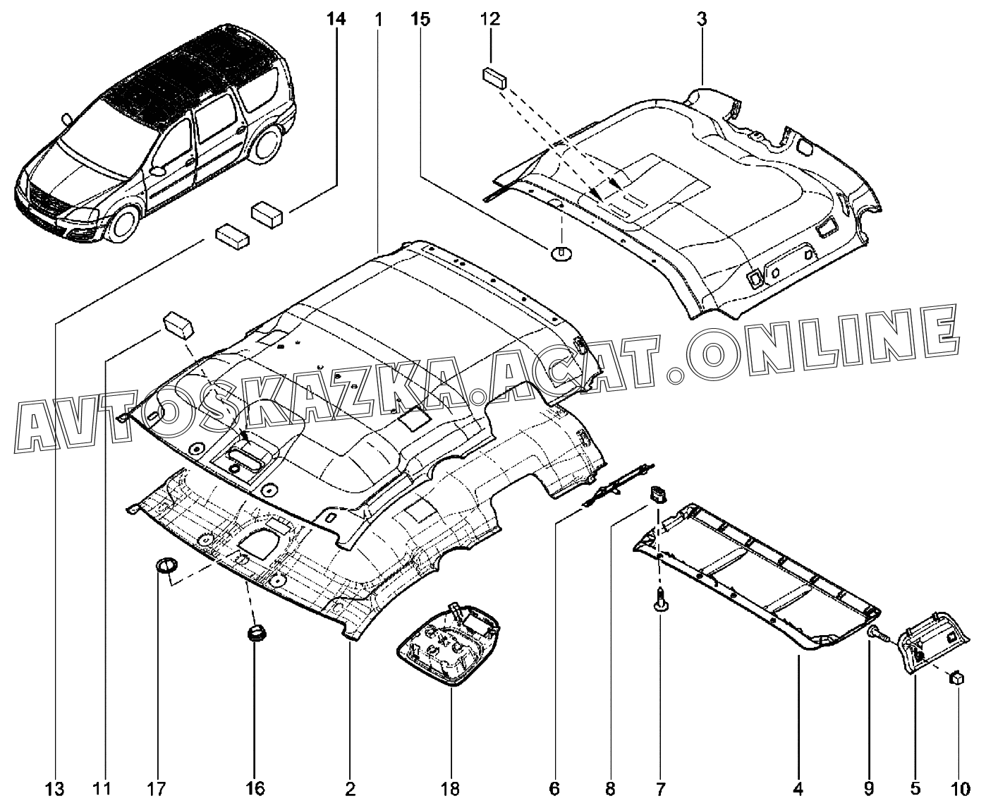 Обивка крыши (универсал) ВАЗ Largus (Lada Largus (хэтчбек, универсал, фургон, FL, CROSS))