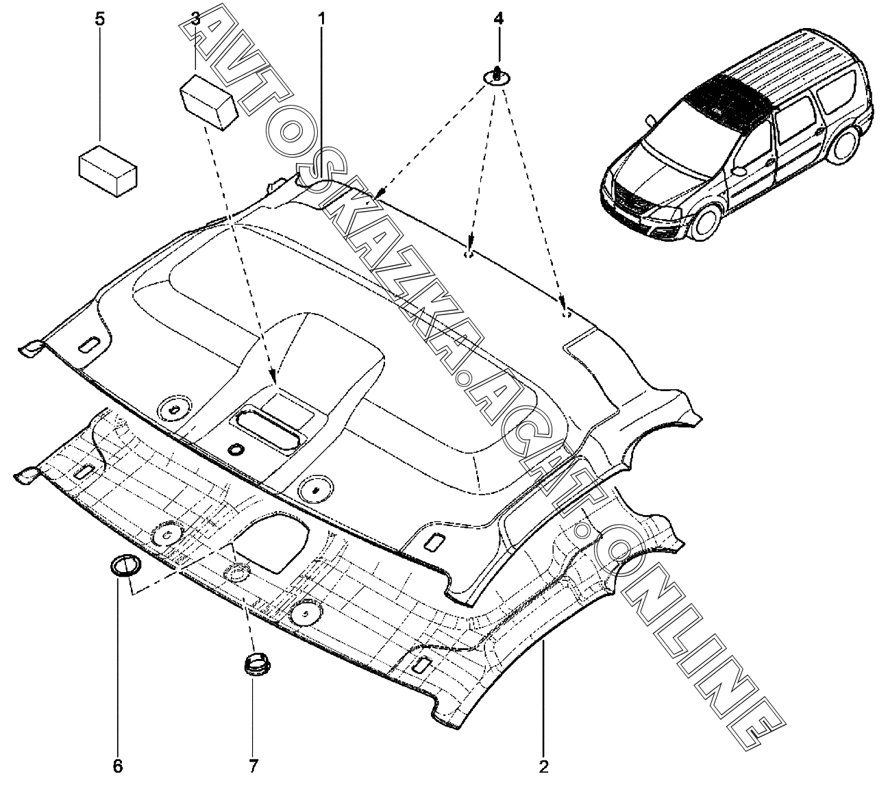 Обивка крыши (фургон) ВАЗ Largus (Lada Largus (хэтчбек, универсал, фургон, FL, CROSS))