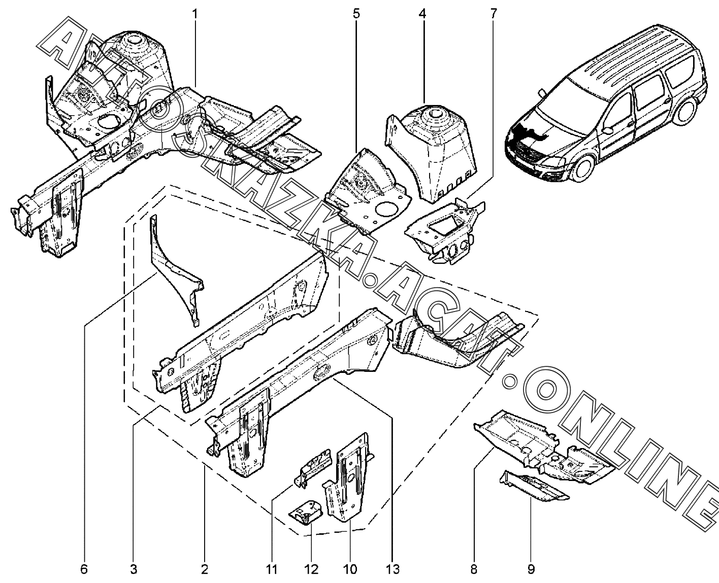 Брызговик с лонжероном правый (двигатель VAZ)(FL) ВАЗ Largus (Lada Largus (хэтчбек, универсал, фургон, FL, CROSS))