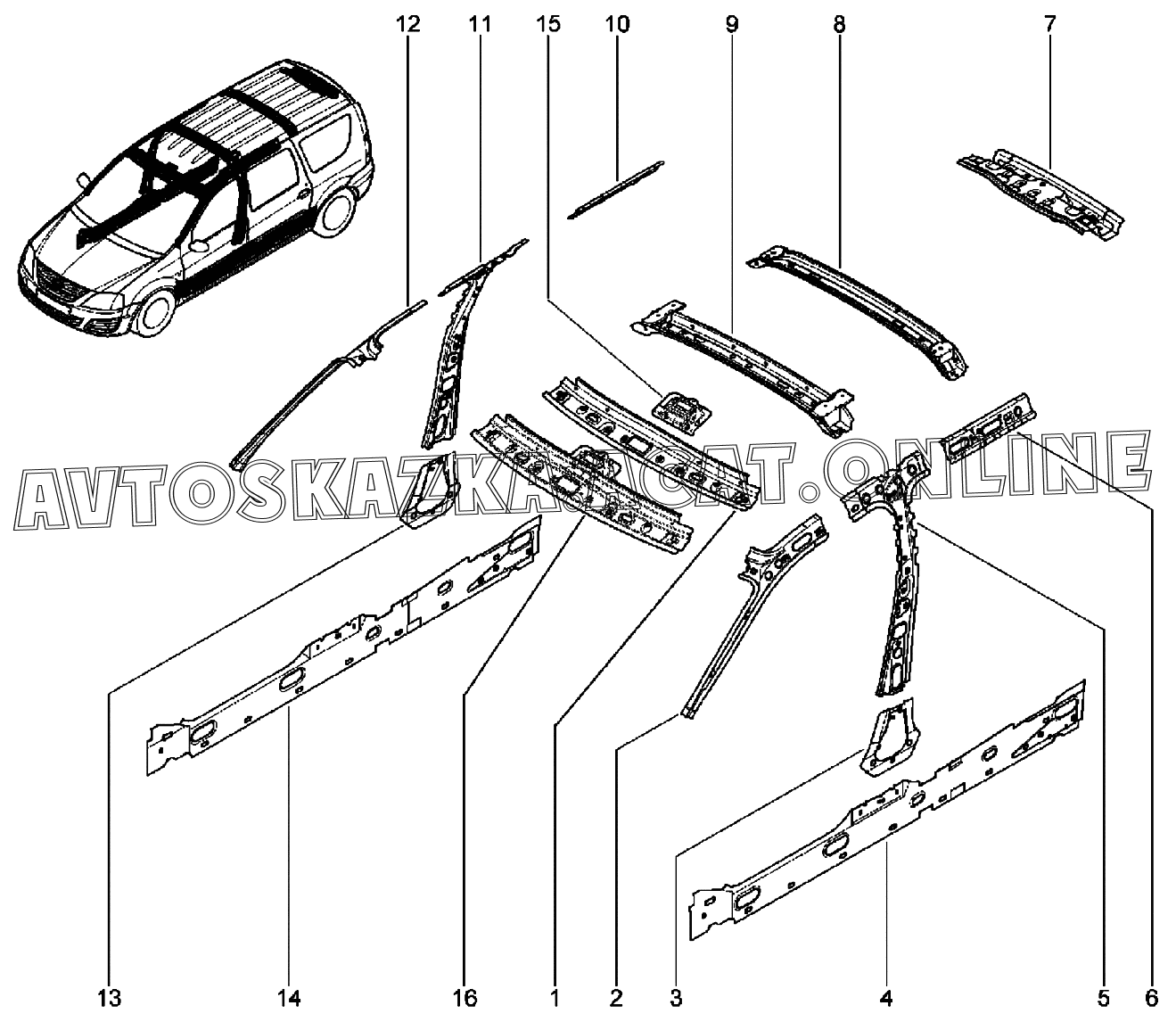 Элементы кузова внутренние ВАЗ Largus (Lada Largus (хэтчбек, универсал, фургон, FL, CROSS))