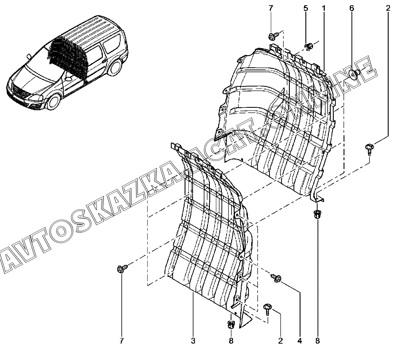 Перегородки кузова ВАЗ Largus (Lada Largus (хэтчбек, универсал, фургон, FL, CROSS))