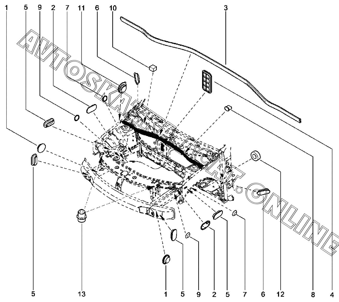 Заглушки щитка передка ВАЗ Largus (Lada Largus (хэтчбек, универсал, фургон, FL, CROSS))