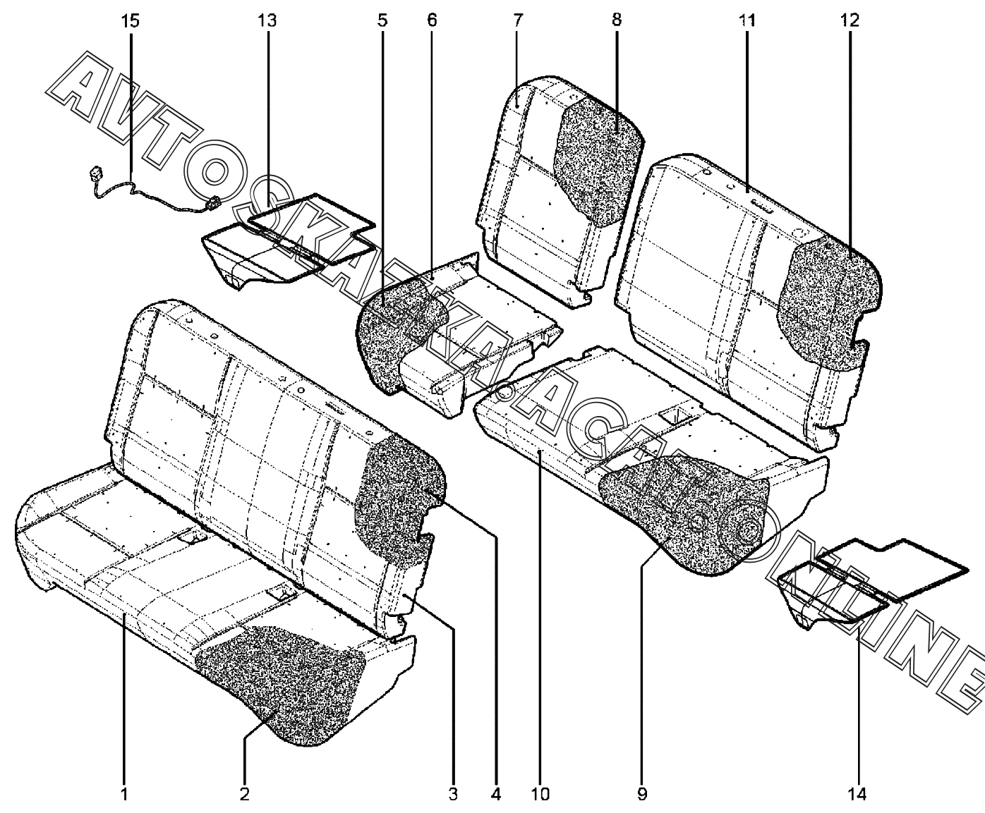 Обивка, набивка сидений второго ряда ВАЗ Largus (Lada Largus (хэтчбек, универсал, фургон, FL, CROSS))