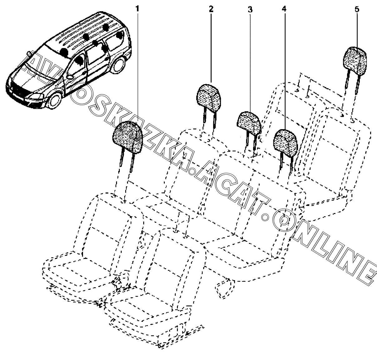 | Название детали: | Подголовник сиденья третьего ряда |