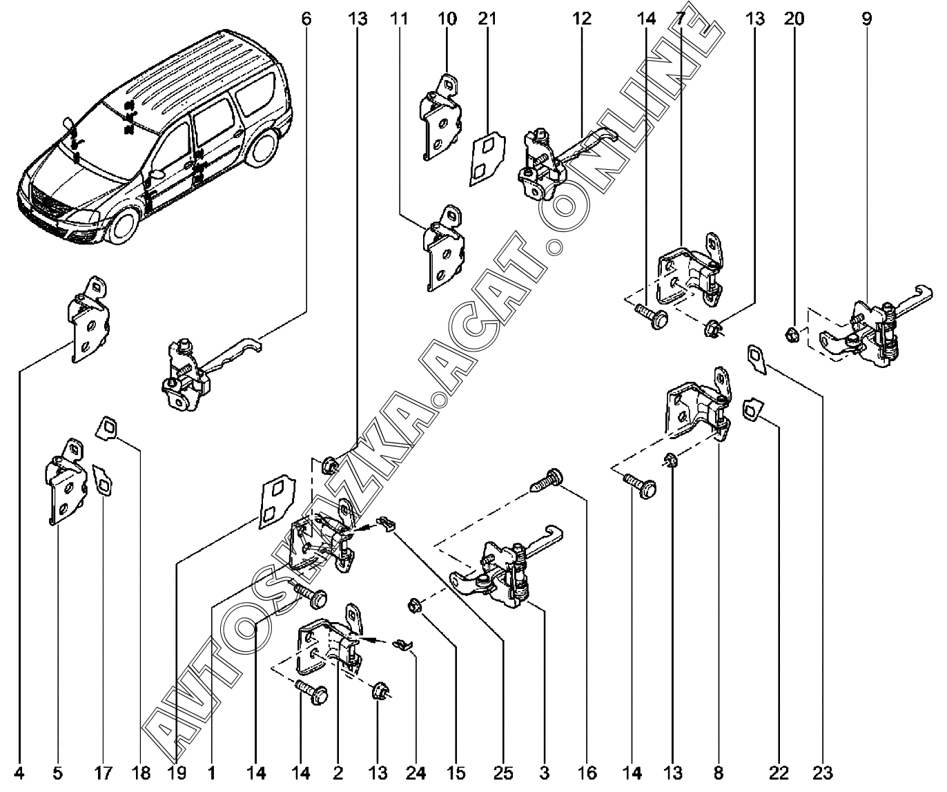 Петли дверей ВАЗ Largus (Lada Largus (хэтчбек, универсал, фургон, FL, CROSS))