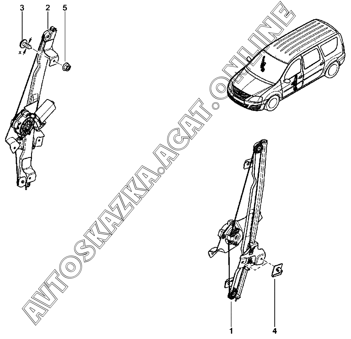 Электростеклоподъемники передних дверей ВАЗ Largus (Lada Largus (хэтчбек, универсал, фургон, FL, CROSS))