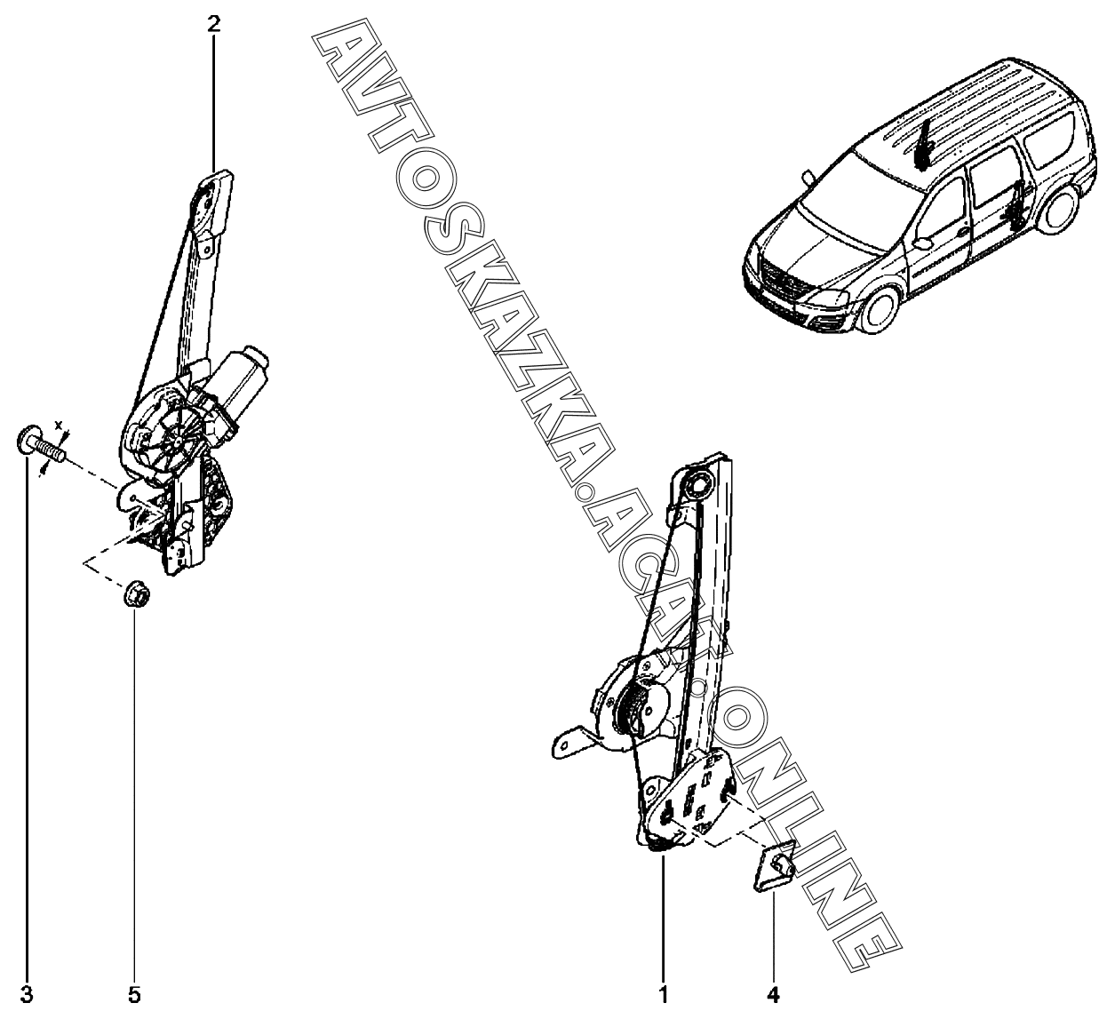 Электростеклоподъемники задних дверей ВАЗ Largus (Lada Largus (хэтчбек, универсал, фургон, FL, CROSS))