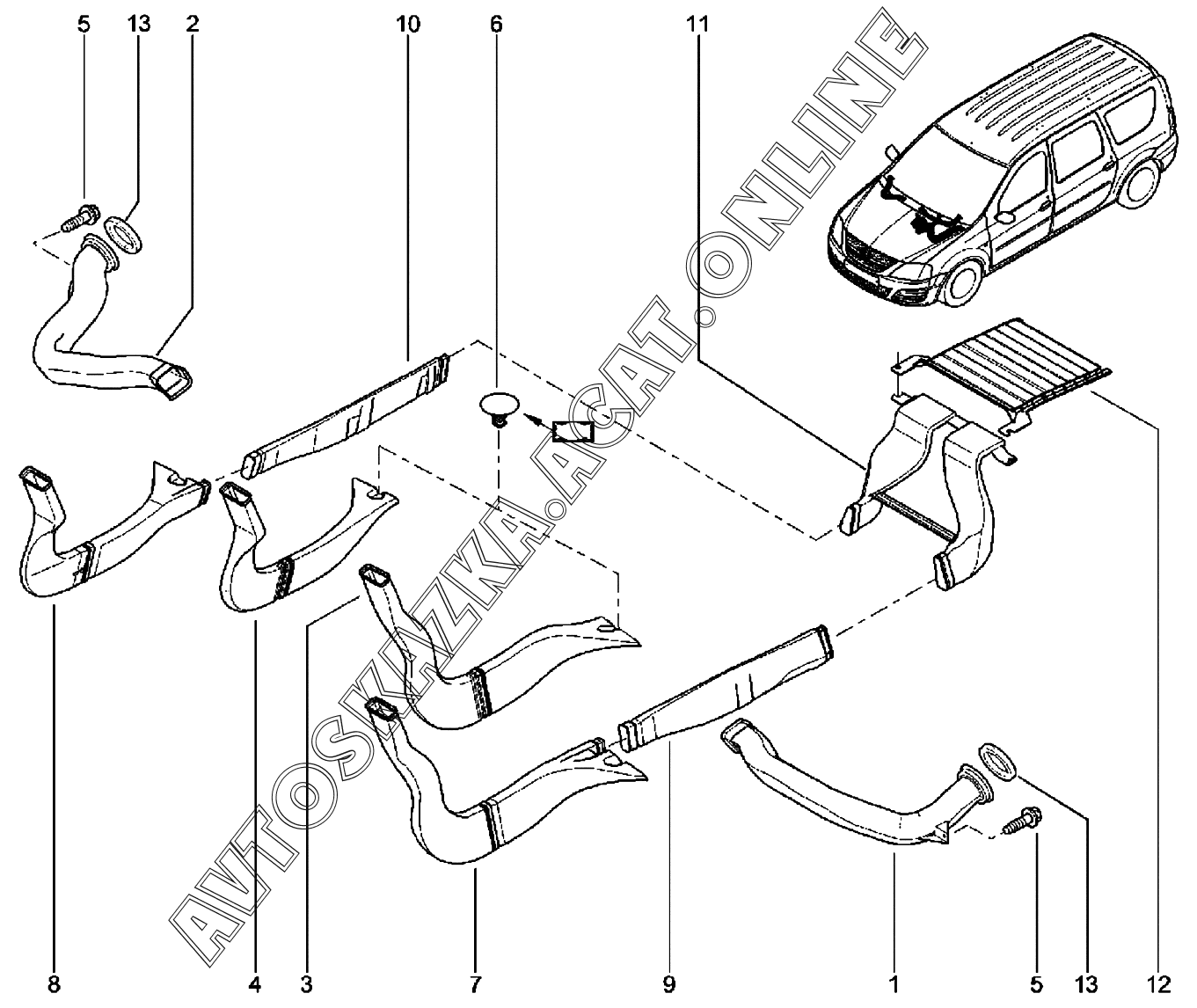 Воздуховоды ВАЗ Largus (Lada Largus (хэтчбек, универсал, фургон, FL, CROSS))
