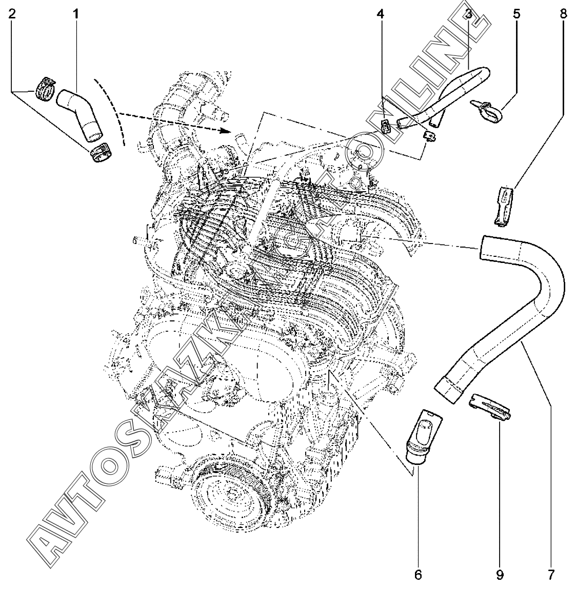 | Название детали: | Шланг вытяжной вентиляции картера верхний |