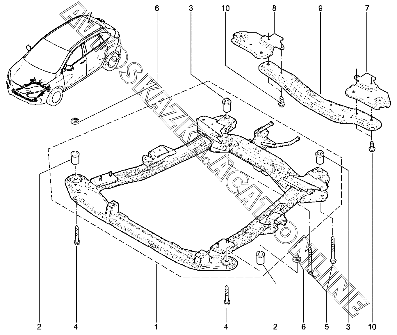 | Название детали: | Подрамник передней подвески в сборе (окрашенный) |