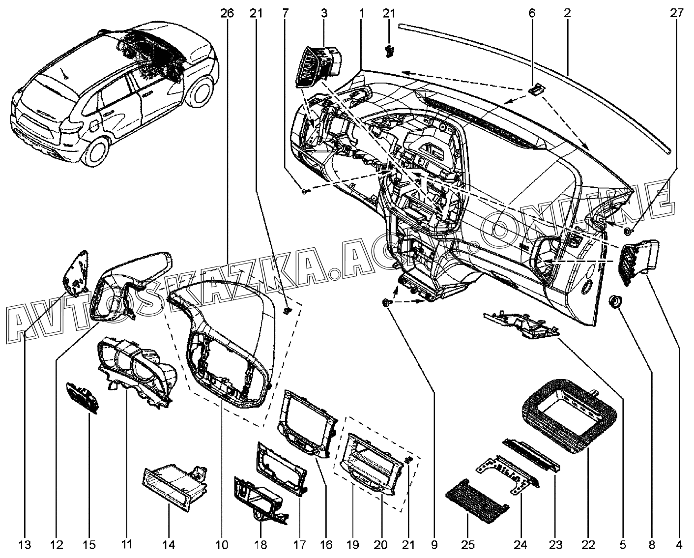 | Название детали: | Облицовка панели приборов центральная в сборе (CANYON) |