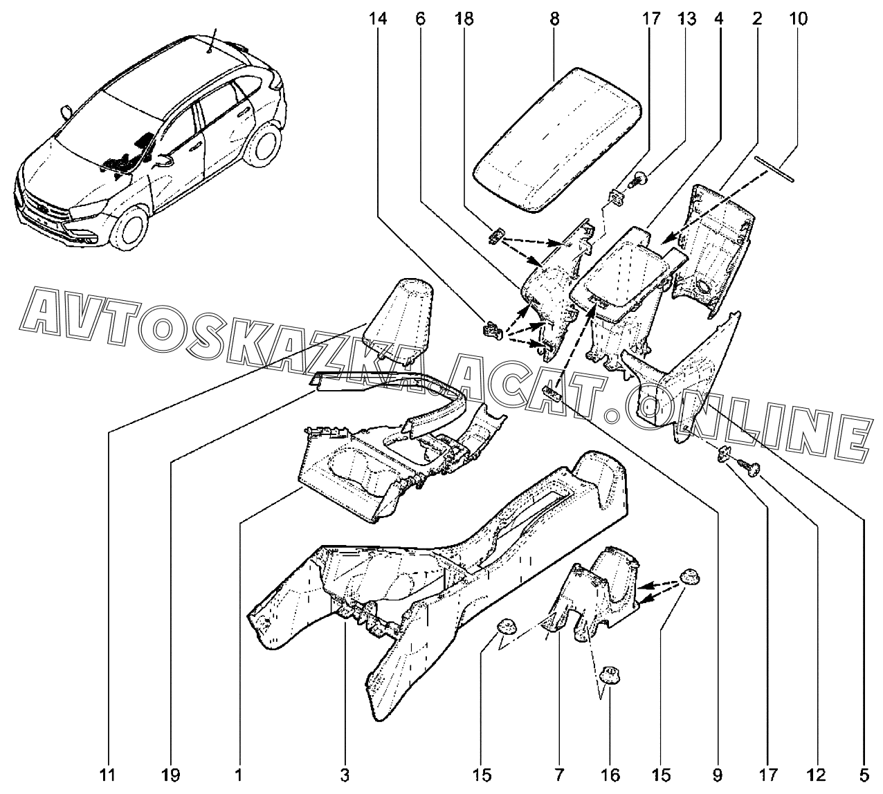 Облицовка тоннеля пола с подлокотником ВАЗ XRAY (Lada XRAY (хэтчбек, CROSS))