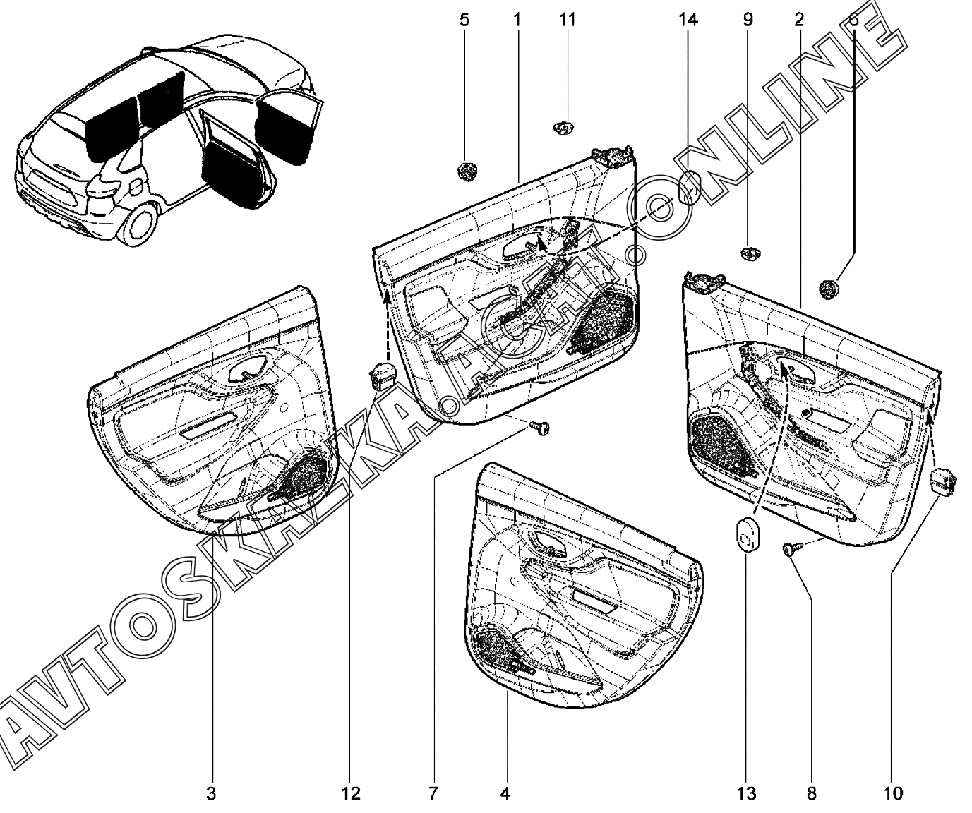Обивка дверей ВАЗ XRAY (Lada XRAY (хэтчбек, CROSS))